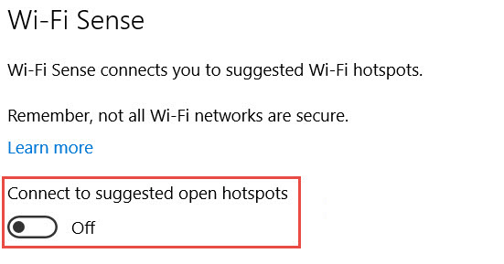 Figure 1: Disabling Wi-Fi Sense