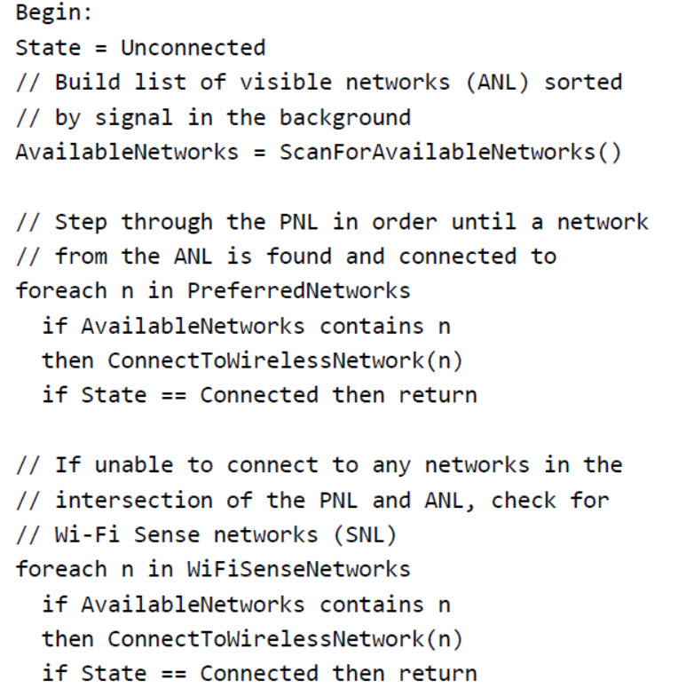 So how is a network tagged as Wi-Fi Sense? When Windows hosts connect to open networks they send information back to Microsoft about its quality. Microsoft collects this information and builds a database of high-quality open networks, that are tagged as Wi-Fi Sense networks. Microsoft seems to store the ESSID and the geolocation data of each of these networks.